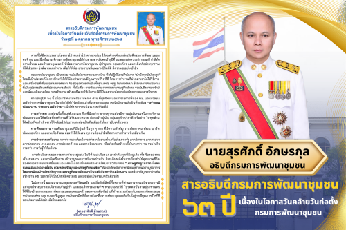 สารอธิบดีกรมการพัฒนาชุมชน เนื่องในโอกาสวันคล้ายวันก่อตั้งกรมการพัฒนาชุมชน วันพุธที่ ๑ ตุลาคม พุทธศักราช ๒๕๖๘
