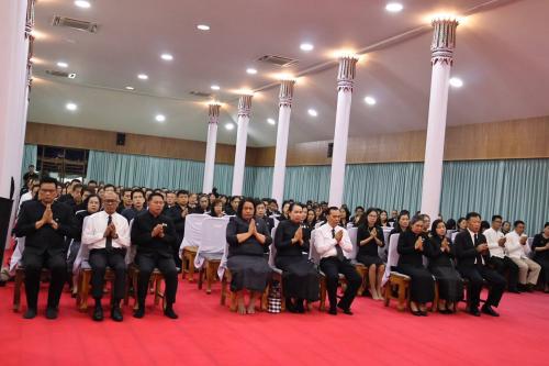โดยผู้เข้าร่วมพิธีต่างพร้อมใจกันร่วมพิธีด้วยชุดสุภาพไว้ทุกข์ เพื่อแสดงความอาลัยอย่างสูงสุด พร้อมทั้งตั้งมั่นในการปฏิบัติราชการเพื่อสืบสานพระราชปณิธานและพระราชกรณียกิจด้านการพัฒนาอาชีพและคุณภาพชีวิตของประชาชนตามแนวทางที่พระองค์ทรงวางรากฐานไว้