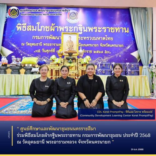 ✨🖤 ศูนย์ศึกษาและพัฒนาชุมชนนครราชสีมา ร่วมพิธีสมโภชผ้ากฐินพระราชทาน กรมการพัฒนาชุมชน ประจำปี 2568 ณ วัดอุดมธานี พระอารามหลวง จังหวัดนครนายก🖤✨