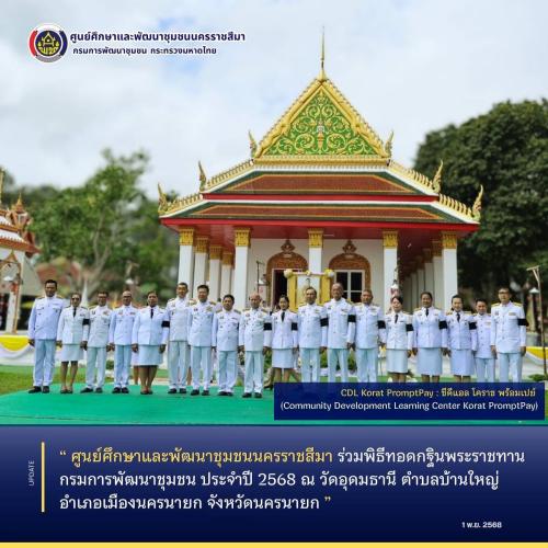 ✨🖤ศูนย์ศึกษาและพัฒนาชุมชนนครราชสีมา ร่วมพิธีทอดกฐินพระราชทาน กรมการพัฒนาชุมชน ประจำปี 2568 ณ วัดอุดมธานี จังหวัดนครนายก 🖤✨