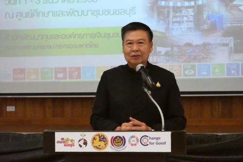 💠นายสยาม ศิริมงคล อธิบดีกรมการพัฒนาชุมชน มอบหมาย นายไพโรจน์ โสภาพร รองอธิบดีกรมการพัฒนาชุมชน เป็นประธานพิธีเปิดโครงการเสริมสร้างศักยภาพกลไกการขับเคลื่อนงานทุนชุมชน กิจกรรมที่ 1 เพิ่มศักยภาพกลไกการขับเคลื่อนงานทุนชุมชนตามหลักธรรมาภิบาลและการพัฒนาเศรษฐกิจฐานราก (ระดับกรม) และบรรยายพิเศษในหัวข้อ “กองทุนชุมชนขับเคลื่อนเศรษฐกิจฐานราก“ พร้อมด้วย นางสาวมนทิรา เข็มทอง ผู้ตรวจราชการกรม ปฏิบัติหน้าที่ ผู้อำนวยการศูนย์ศึกษาและพัฒนาชุมชนชลบุรี โดยมี นายสมระลึก สุระมาศ ผู้อำนวยการกลุ่มงานส่งเสริมและพัฒนาทุนชุมชน ปฏิบัติราชการแทน ผู้อำนวยการสำนักพัฒนาทุนและองค์กรการเงินชุมชน กล่าวรายงาน