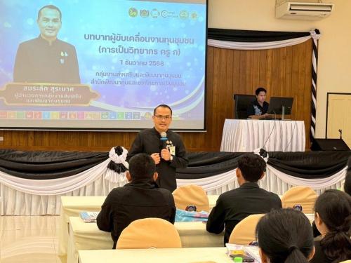 💠โครงการเสริมสร้างศักยภาพกลไกการขับเคลื่อนงานทุนชุมชน กิจกรรมที่ 1 เพิ่มศักยภาพกลไกการขับเคลื่อนงานทุนชุมชนตามหลักธรรมาภิบาลและการพัฒนาเศรษฐกิจฐานราก (ระดับกรม) มีวัตถุประสงค์ เพื่อเพิ่มศักยภาพเจ้าหน้าที่ และคณะกรรมการกองทุนชุมชน ให้มีความรู้ความเข้าใจในการขับเคลื่อนงานทุนชุมชนขับเคลื่อนเศรษฐกิจฐานราก รวมถึงการส่งเสริมประชาชนเข้าถึงแหล่งทุนที่มีในชุมชนเพื่อนำเงินทุนไปประกอบอาชีพให้เกิดรายได้ และเพื่อให้เจ้าหน้าที่และคณะกรรมการกองทุนชุมชนสามารถถ่ายทอดองค์ความรู้งานทุนชุมชนขับเคลื่อนเศรษฐกิจฐานรากเป็นไปในทิศทางและรูปแบบเดียวกันในการถ่ายทอดได้อย่างมีประสิทธิภาพ จัดขึ้นโดย สำนักพัฒนาทุนและองค์กรการเงินชุมชน มีกลุ่มเป้าหมายผู้เข้าอบรม จำนวน 130 คน ประกอบด้วย เจ้าหน้าที่พัฒนาชุมชนจังหวัด/อำเภอ จำนวน 86 คน และเจ้าหน้าที่ศูนย์ศึกษาและพัฒนาชุมชน 11 แห่ง ๆ ละ 4 คน รวม 44 คน ดำเนินการระหว่างวันที่ 1 – 3 ธันวาคม 2568 ณ ศูนย์ศึกษาและพัฒนาชุมชนชลบุรี
