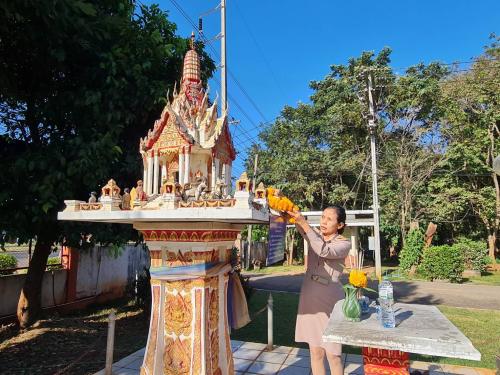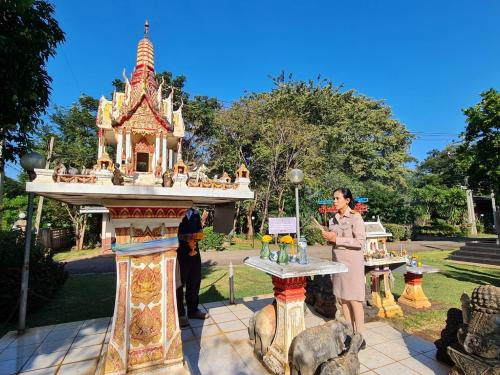หลังจากนั้น ได้ร่วมกันสักการะพระพุทธพัฒนปชานาถ ซึ่งเป็นพระพุทธรูปประจำศูนย์ฯ และศาลพระภูมิเจ้าที่ ศาลตายา สิ่งศักดิ์สิทธิ์ ที่ประดิษฐานอยู่ภายในบริเวณศูนย์ฯ เพื่อความเป็นสิริมงคลและขวัญกำลังใจในการทำงาน