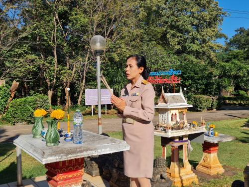 นางอรุณรัตน์ ชิงชนะ ผู้ตรวจราชการกรม ปฏิบัติหน้าที่ผู้อำนวยการศูนย์ศึกษาและพัฒนาชุมชนนครราชสีมา มอบหมายให้นางสาวบุษราภรณ์ แก้วยงกฎ ผู้อำนวยการกลุ่มงานตรวจราชการ พร้อมด้วย ผู้อำนวยการกลุ่มงาน บุคลากรศูนย์ศึกษาและพัฒนาชุมชนนครราชสีมา จัดกิจกรรมเคารพธงชาติ พิธีสักการะพระพุทธพัฒนปชานาถ และสิ่งศักดิ์สิทธิ์ประจำศูนย์ เพื่อความเป็นสิริมงคลแก่บุคลากรและองค์กร
