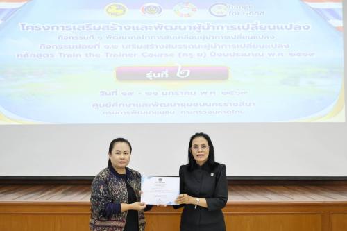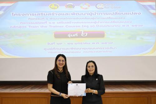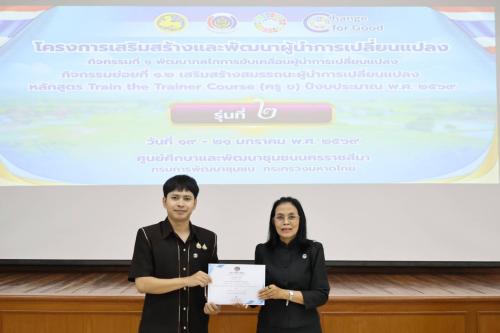💠 นางอรุณรัตน์ ชิงชนะ ผู้ตรวจราชการกรมการพัฒนาชุมชน มอบหมายให้ นางสาวบุษราภรณ์ แก้วยงกฎ ผู้อำนวยการกลุ่มงานตรวจราชการ เป็นประธานในพิธีปิดและมอบเกียรติบัตรแก่ผู้ผ่านการอบรม โครงการเสริมสร้างและพัฒนาผู้นำการเปลี่ยนแปลง กิจกรรมที่ 1 : เสริมสร้างสมรรถนะผู้นำการเปลี่ยนแปลง หลักสูตร Train the Trainer Course (ครู ข) รุ่นที่ 2 โดยมีนายเมธาสิทธิ์ สิริจันทร์ชื่น ผู้อำนวยการกลุ่มงานบริการทางวิชาการ กล่าวรายงาน พร้อมด้วย บุคลากรศูนย์ศึกษาและพัฒนาชุมชนนครราชีสมา และผู้อบรมเข้าร่วมโดยพร้อมเพรียง