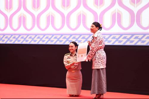 การจัดแสดงผลงานครั้งนี้ เป็นเวทีสำคัญในการสะท้อนศักยภาพของชุมชนในการน้อมนำแนวพระดำริ “ผ้าไทยใส่ให้สนุก” มาประยุกต์ใช้ในการพัฒนาผลิตภัณฑ์ผ้าไทยและงานหัตถกรรม โดยมุ่งเน้นการใช้สีจากธรรมชาติ วัตถุดิบจากเส้นใยและพืชพรรณภายในชุมชน ควบคู่การออกแบบที่สอดคล้องกับเทรนด์ร่วมสมัย ตามแนวคิด “Sustainable Fashion : แฟชั่นแห่งความยั่งยืน” อันเป็นการยกระดับภูมิปัญญาท้องถิ่นสู่เศรษฐกิจสร้างสรรค์และตลาดสากล