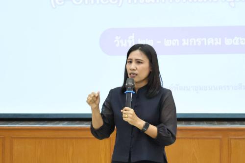 💠การอบรมครั้งนี้ได้รับเกียรติจาก นางสาวสุราพร ดวงเนตร ปฏิบัติหน้าที่ผู้อำนวยการกลุ่มงานสารบรรณกลางและอำนวยการ พร้อมด้วยคณะบุคลากรจากส่วนกลาง ร่วมเป็นวิทยากรบรรยายให้ความรู้แก่บุคลากรกรมการพัฒนาชุมชนจาก 5 จังหวัดในเขตพื้นที่บริการ (กลุ่มจังหวัดมหานครชัยบุรินทร์) เพื่อสร้างความเข้าใจในระบบการทำงานอิเล็กทรอนิกส์ที่เชื่อมโยงกันทั้งองค์กร