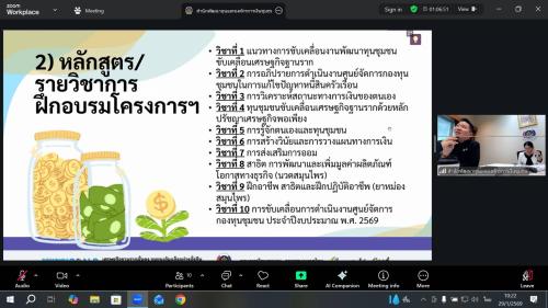 นางอรุณรัตน์ ชิงชนะ ผู้ตรวจราชการกรม ปฏิบัติหน้าที่ผู้อำนวยการศูนย์ศึกษาและพัฒนาชุมชนนครราชสีมา มอบหมายให้ นายเมธาสิทธิ์ ศิริจันทร์ชื่น ผู้อำนวยกลุ่มงานบริการทางวิชาการ พร้อมด้วย บุคคลากร ศพช.นครราชสีมา และเจ้าหน้าที่ผู้รับผิดชอบงานฝึกอบรมศูนย์จัดการกองทุนชุมชนฯ ทั้ง 7 แห่ง เข้าร่วมประชุมซักซ้อมแนวทางการดำเนินงานโครงการสำคัญของสำนักพัฒนาทุนและองค์กรการเงินชุมชน (สทอ.) ผ่านระบบออนไลน์ (Zoom Cloud Meetings)