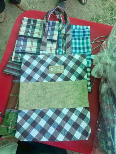1) กลุ่มเย็บกระเป๋าจากผ้าขาวม้า ตำบลโคกมั่งงอย อำเภอคอนสวรรค์