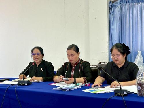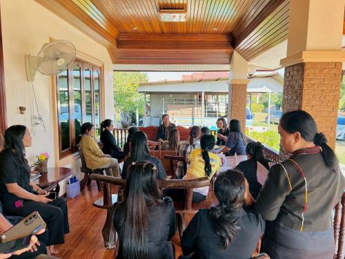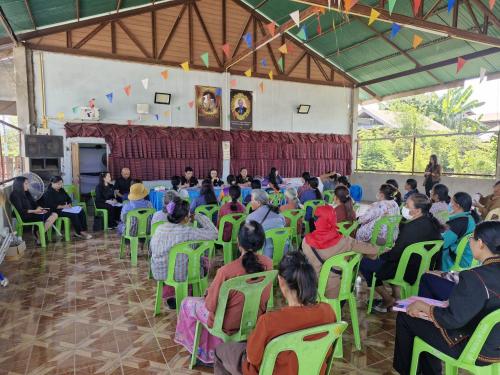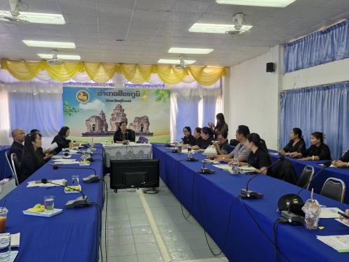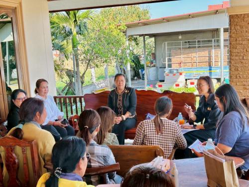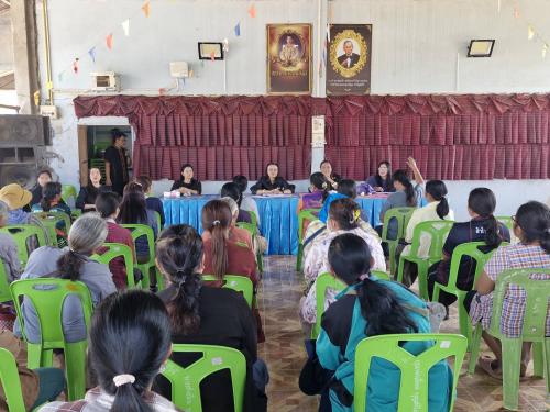 จากนั้นได้ลงพื้นที่ติดตามสนับสนุนการขับเคลื่อนการบริหารจัดการหนี้กองทุนพัฒนาบทบาทสตรี ณ บ้านหมื่นสีกลางหมู่ที่ 2 ตำบลหมื่นศรี อำเภอสำโรงทาบ จังหวัดสุรินทร์ โดยได้ให้แนวทางการขับเคลื่อนงานกองทุนพัฒนาบทบาทสตรี ประชาสัมพันธ์มาตราการช่วยเหลือลูกหนี้กองทุนพัฒนาบทบาทสตรี และการบริหารจัดการหนี้อย่างมีประสิทธิภาพให้แก่คณะทำงานขับเคลื่อนตำบลหมื่นศรี และสมาชิกกองทุนพัฒนาบทบาทสตรี เพื่อให้ผู้หญิงเข้าถึงเงินทุนเพื่อประกอบอาชีพและสร้างรายได้เลี้ยงครอบครัว ทั้งนี้ได้แนะนำให้พัฒนากรทำข้อมูลหนี้รายบุคคล และการนำเสนอผลสำเร็จของกลุ่มกู้เงินที่ประสบผลสำเร็จ เพื่อเสริมสร้างโอกาสการเข้าถึงแหล่งทุนและการสร้างรายได้ของสตรีในชุมชนอย่างยั่งยืน