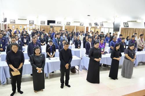 ✨🇹🇭 ก่อนเริ่มเข้าสู่เนื้อหาการอบรม ได้จัดกิจกรรมสร้างความเป็นสิริมงคลและแสดงความจงรักภักดีต่อสถาบันหลักของชาติ โดยมีการเคารพธงชาติ สวดมนต์ไหว้พระ และยืนสงบนิ่งน้อมรำลึกถึงพระมหากรุณาธิคุณสมเด็จพระนางเจ้าสิริกิติ์ พระบรมราชินีนาถ พระบรมราชชนนีพันปี เพื่อเตรียมความพร้อมทั้งกายและใจ