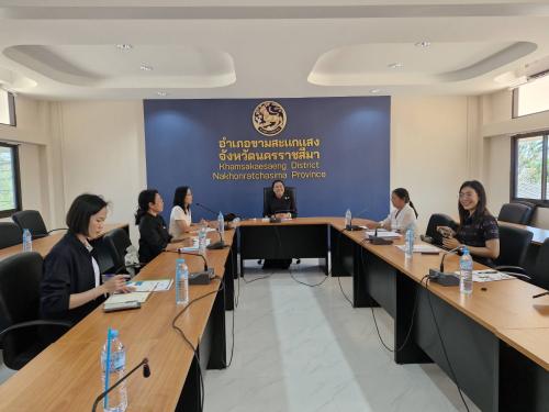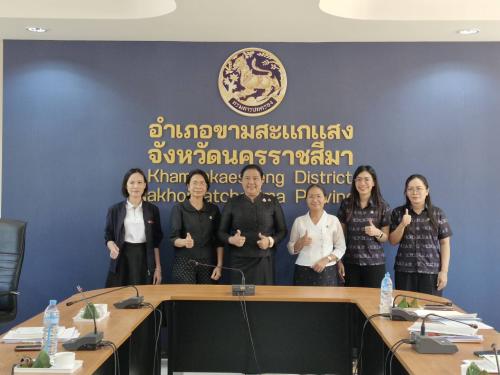 ผู้อำนวยการกลุ่มงานยุทธศาสตร์การพัฒนาชุมชน นางวิลาวรรณ บำรุงกลาง พัฒนาการอำเภอขามสะแกแสง เจ้าหน้าที่สำนักงานพัฒนาชุมชนจังหวัด และอำเภอขามสะแกแสง ผู้นำเครือข่ายพัฒนาชุมชนในพื้นที่ร่วมต้อนรับและรายงานความคืบหน้าการดำเนินงาน และรับมอบแนวทางการขับเคลื่อนงานให้มีประสิทธิภาพ ณ ห้องประชุมอำเภอขามสะแกแสง