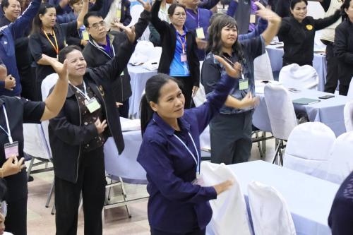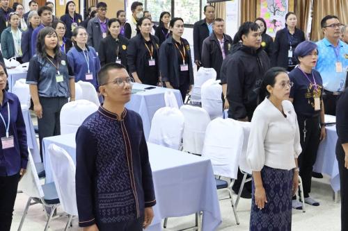 บรรยากาศในช่วงเช้าเป็นไปอย่างพร้อมเพรียง โดยคณะผู้เข้ารับการอบรมได้ร่วมกิจกรรมสร้างความเป็นสิริมงคลและแสดงความจงรักภักดีต่อสถาบันหลักของชาติ ผ่านกิจกรรมเคารพธงชาติ สวดมนต์ไหว้พระ และยืนสงบนิ่งเพื่อน้อมรำลึกถึงพระมหากรุณาธิคุณของสมเด็จพระนางเจ้าสิริกิติ์ พระบรมราชินีนาถ พระบรมราชชนนีพันปีหลวง พร้อมร่วมกิจกรรมออกกำลังกายยามเช้าเพื่อเตรียมความพร้อมทั้งร่างกายและจิตใจก่อนเข้าสู่บทเรียน