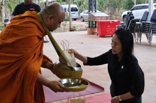 💠 นางอรุณรัตน์ ชิงชนะ ผู้ตรวจราชการกรม ปฏิบัติหน้าที่ผู้อำนวยการศูนย์ศึกษาและพัฒนาชุมชนนครราชสีมา มอบหมายให้ นางสาวบุษราภรณ์ แก้วยงกฎ ผู้อำนวยการกลุ่มงานตรวจราชการ ผู้อำนวยการกลุ่มงาน บุคลากรศูนย์ศึกษาและพัฒนาชุมชนนครราชสีมา และผู้เข้าร่วมอบรม จัดกิจกรรม “ทำบุญใส่บาตร เสริมสิริมงคล” ในเช้าวันสุดท้ายของการฝึกอบรมเสริมสร้างศักยภาพกลไกการขับเคลื่อนงานทุนชุมชน มุ่งสร้างความสมัครสมานสามัคคี และกระตุ้นจิตสำนึกในการปฏิบัติหน้าที่ด้วยความซื่อสัตย์สุจริต