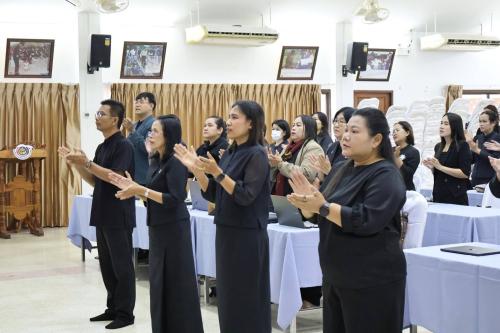 ✨🇹🇭บรรยากาศในช่วงเช้าเป็นไปอย่างพร้อมเพรียง โดยคณะผู้เข้ารับการอบรมได้ร่วมกิจกรรมสร้างความเป็นสิริมงคลและแสดงความจงรักภักดีต่อสถาบันหลักของชาติ ผ่านกิจกรรมเคารพธงชาติ สวดมนต์ไหว้พระ และยืนสงบนิ่งเพื่อน้อมรำลึกถึงพระมหากรุณาธิคุณของสมเด็จพระนางเจ้าสิริกิติ์ พระบรมราชินีนาถ พระบรมราชชนนีพันปีหลวง