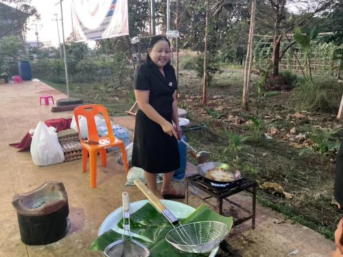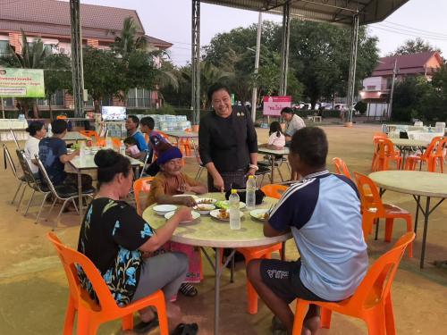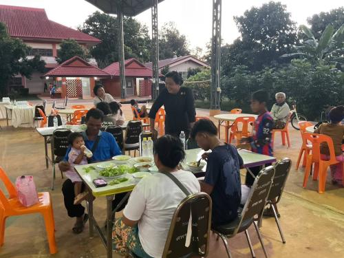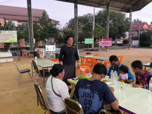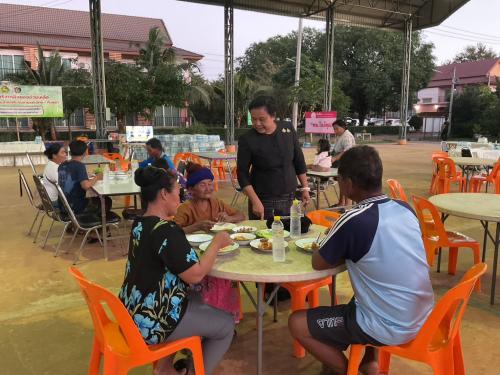 และนำทีม ผู้อำนวยการกลุ่มงาน เจ้าหน้าที่ เข้าดูแลความเป็นอยู่ของผู้อพยพอย่างใกล้ชิด โดยได้ ประกอบอาหารแจกจ่าย ให้แก่ผู้ประสบภัยด้วยตนเอง เพื่อเป็นขวัญและกำลังใจ