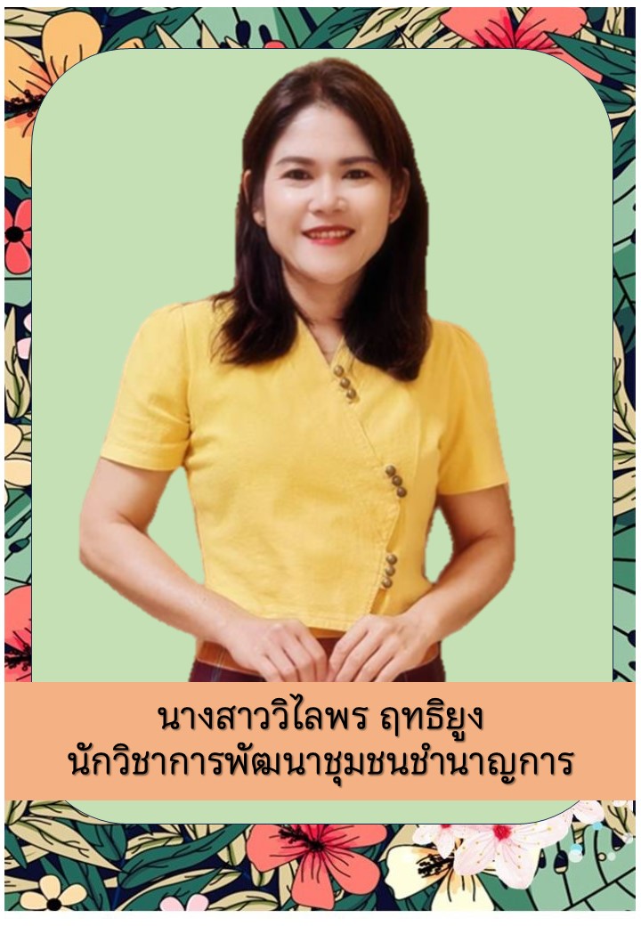 นางสาววิไลพร ฤทธิยูง นักวิชาการพัฒนาชุมชนชำนาญการ |