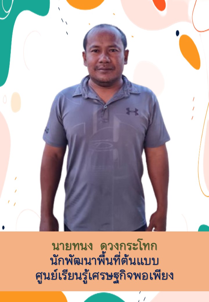 ![]() นายทนง ดวงกระโทก นักพัฒนาพื้นที่ต้นแบบ |