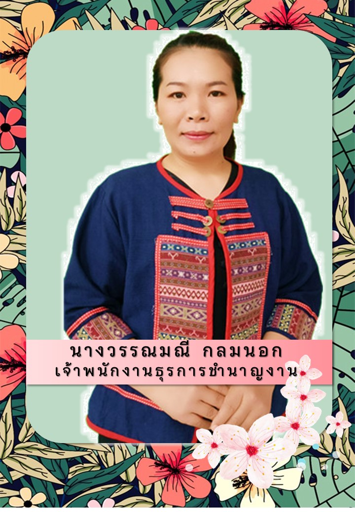 ![]() นางวรรณมณี กลมนอก เจ้าพนักงานธุรการชำนาญงาน |